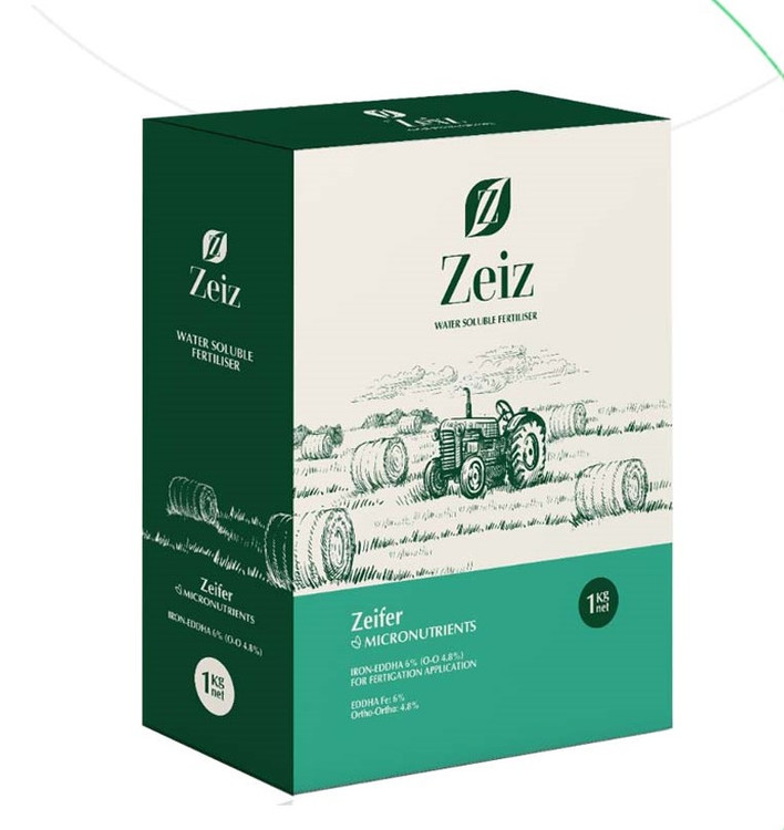 کود کلات آهن زایفر محصول شرکت زایز انگلستان است. این کود حاوی عنصر آهن به فرم کلاته بوده که در اسیدیته (PH) بالاتر از ۷ نیز عنصر آهن را به طور کامل در اختیار گیاه قرار میدهد. همچنین در خاکهای قلیایی و کربناتی که کمبود آهن وجود داشته یا جذب آهن با مشکل مواجه است استفاده از کود آهن زایفر میتواند بسیار موثر و کاربردی باشد. این کود به دلیل اینکه به طور کامل کلاته شده در نتیجه آهن موجود در آن هیچ ایزومری نداشته و موجب جذب کامل عنصر آهن توسط گیاه خواهد شد. کود آهن زایفر مناسب برای استفاده به صورت کود آبیاری و کاربرد در گیاهان مختلف زراعی و باغی است.